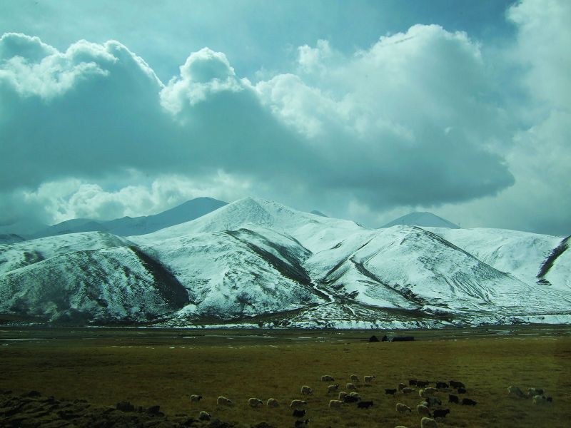下面是雪山或雪地或草原放牧的图片: